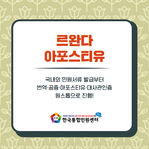 르완다에서 사용할 위임장, 출생증명서, 건강진단서 등 한국통합민원센터와 함께라면 복잡한 인증 절차도 한 번에 해결하실 수 있어요!