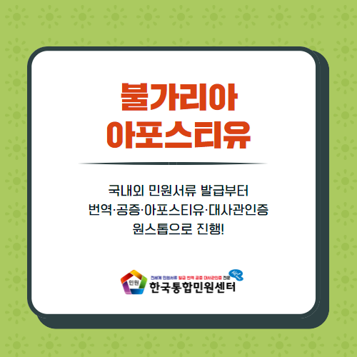 불가리아에서 사용할 건강진단서, 위임장, 출생증명서 등 한국통합민원센터와 함께라면 복잡한 절차 없이 한 번에 준비하실 수 있어요!